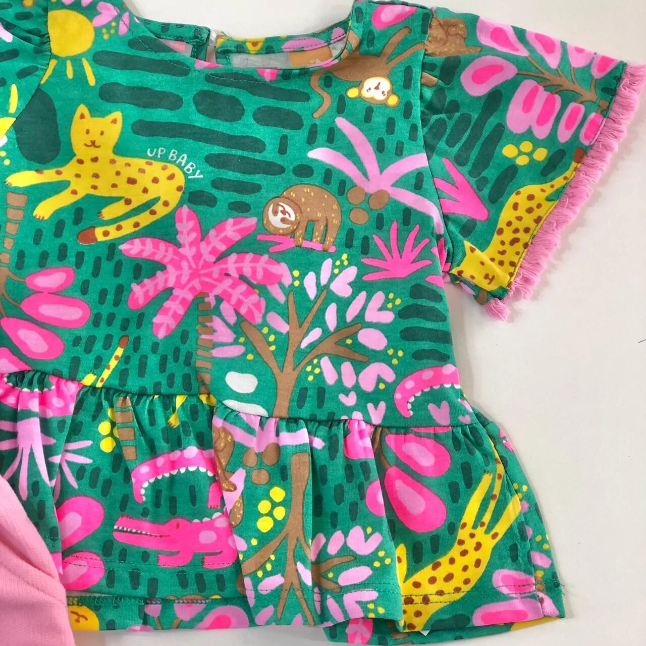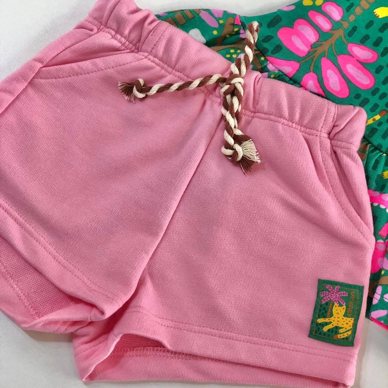 Conjunto de blusa em malha com estampa floral digital e short motelom sem felpa e com bolso frontal.