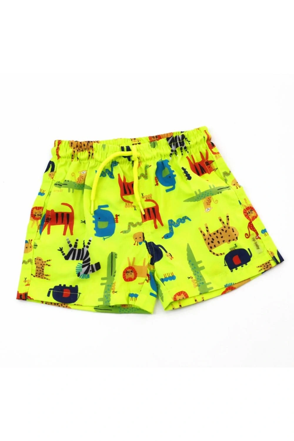 Short em microfibra com elastano na cor verde neon. Estampa de safari, com bolsos frontais. CAMISETA NÃO INCLUSA.