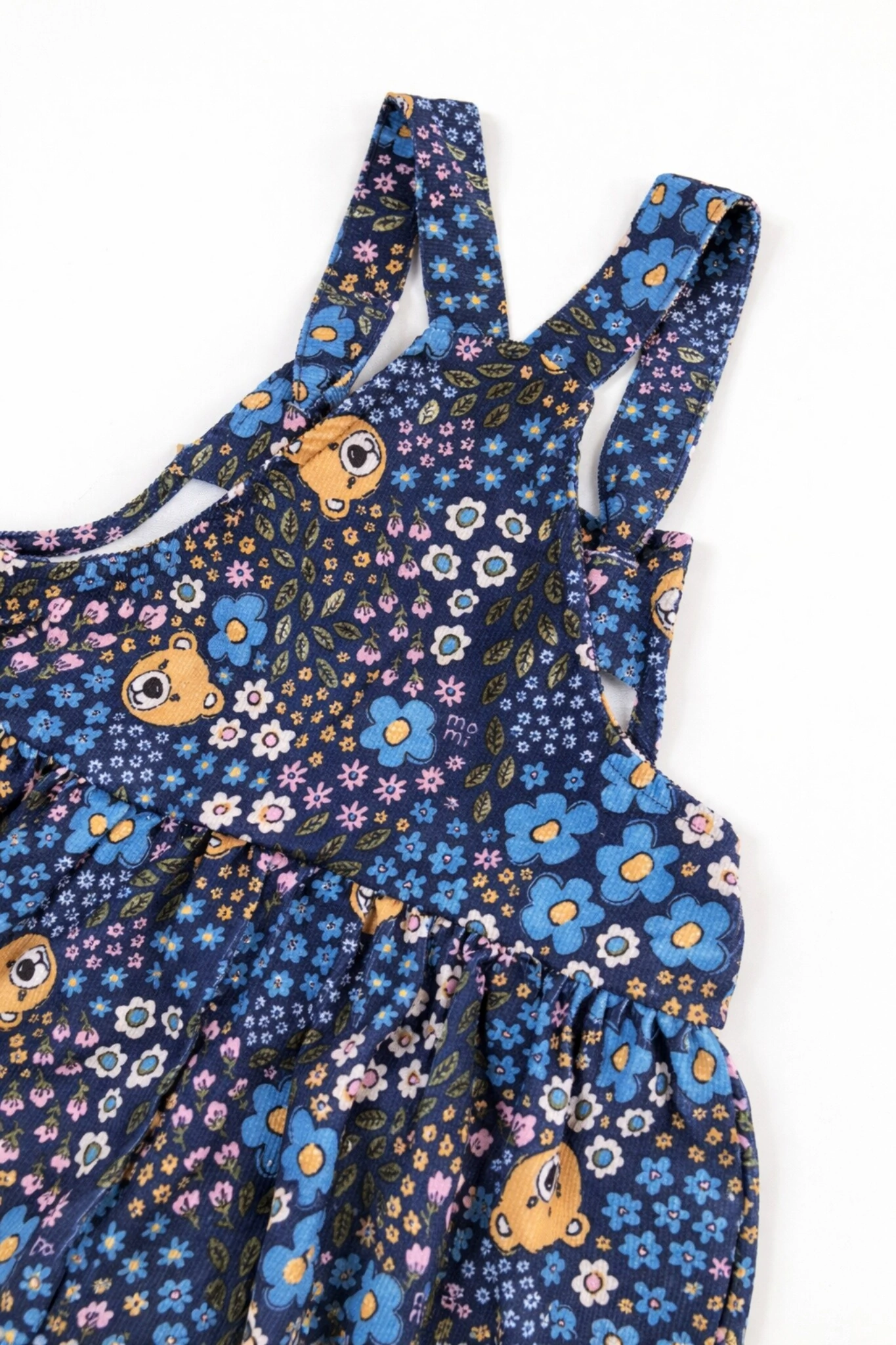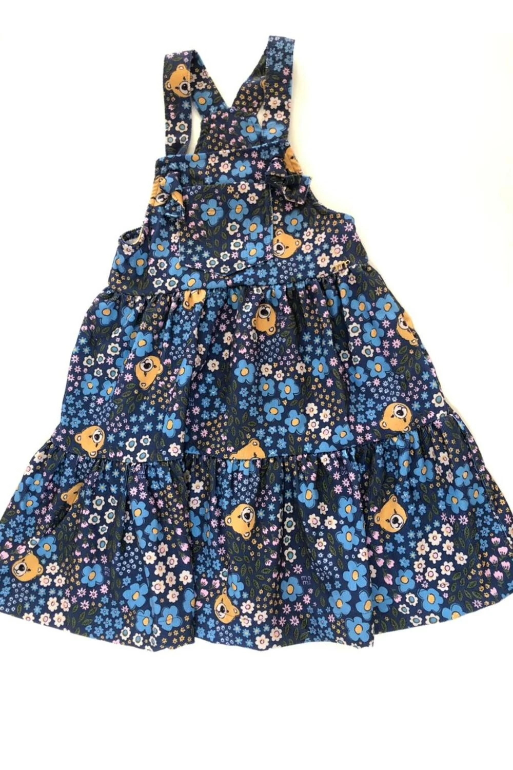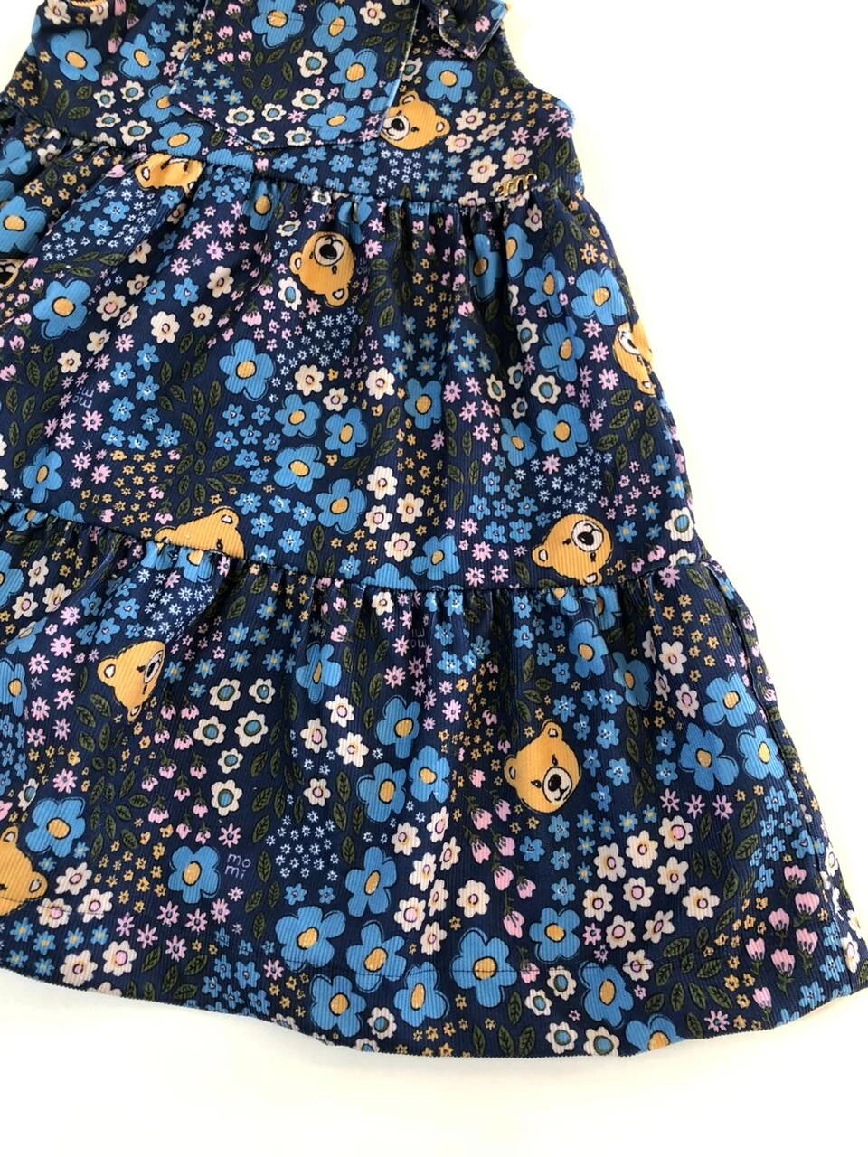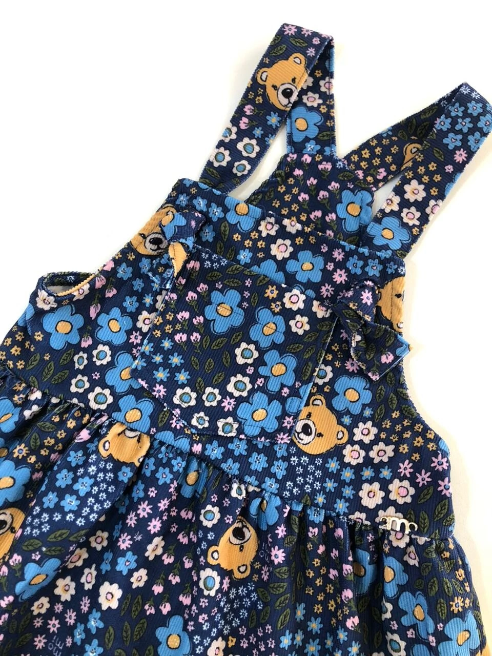Salopete confeccionado em veludo cotelê leve e macio. Apresenta estampa de ursinho e flores. Possui bolso frontal. BLUSA NÃO INCLUSA.