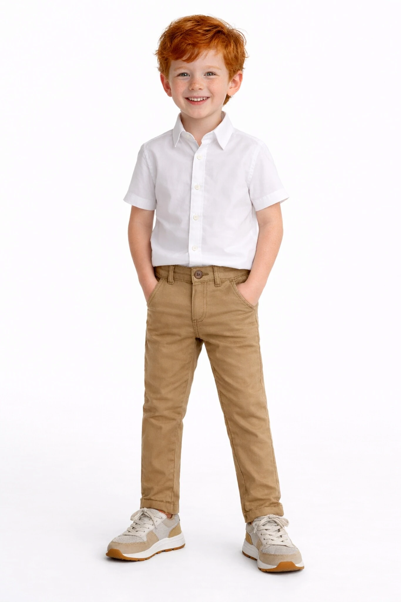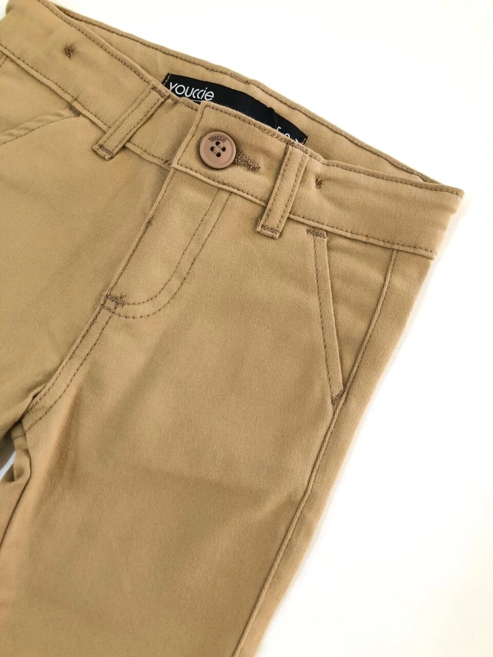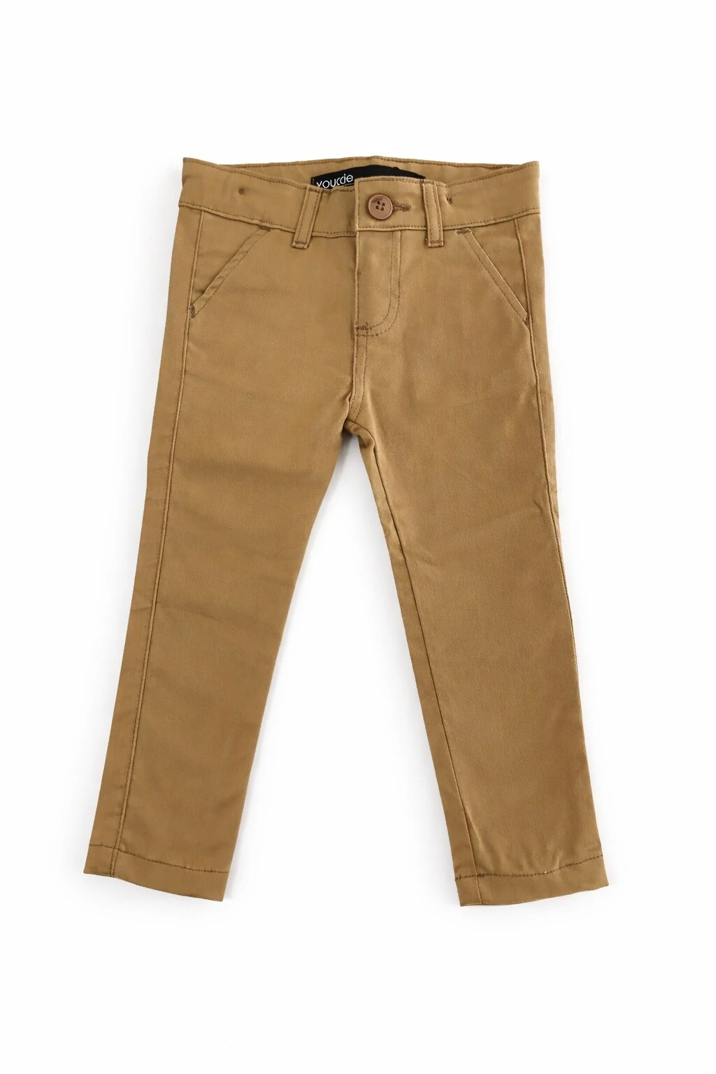 Calça em sarja, na cor bege escuro. Com modelagem reta, tecido leve e toque macio. CAMISA NÃO INCLUSA.